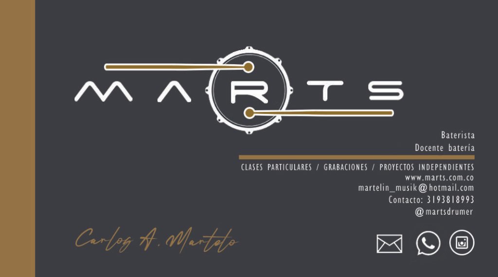 MARTS nace como un emprendimiento para ofrecer clases de batería personalizadas y es una marca liderada por Carlos Alberto Martelo Martelo, licenciado en música de la Universidad de Antioquia, capacitado para acompañarte como tutor en tu proceso.